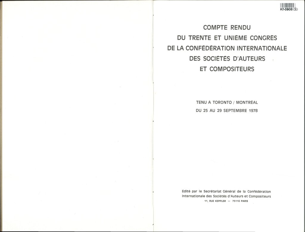 COMPTE RENDU DU TRENTE ET CONGRES DE LA CONFÉDÉRATION INTERNATIONALE DES SOCIÉTÉS D'AUTEURS ET COMPOSITEURS