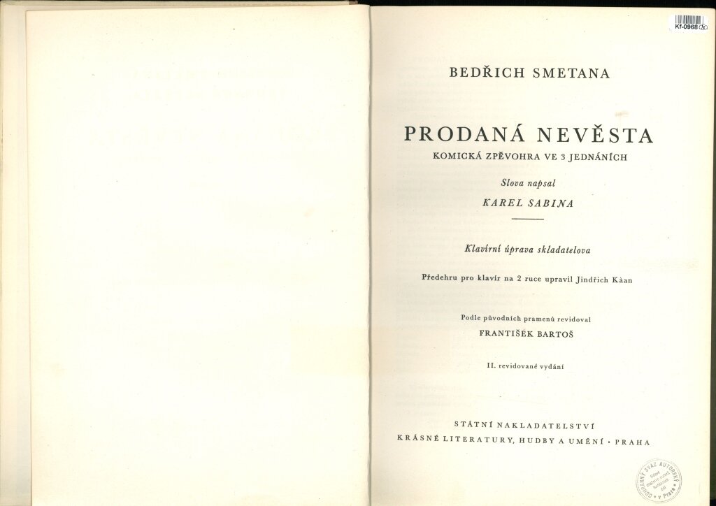 Prodaná nevěsta - komická zpěvohra ve 3 jednáních