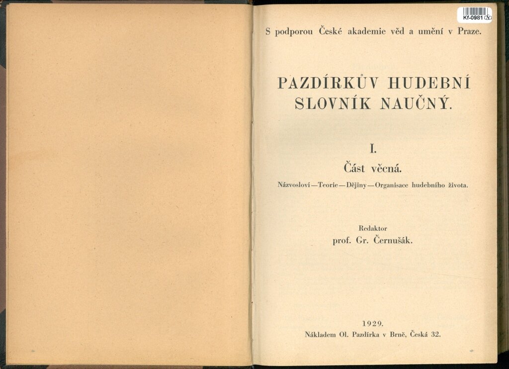 PAZDÍRKŮV HUDEBNÍ SLOVNÍK NAUČNÝ I. - Část věcná