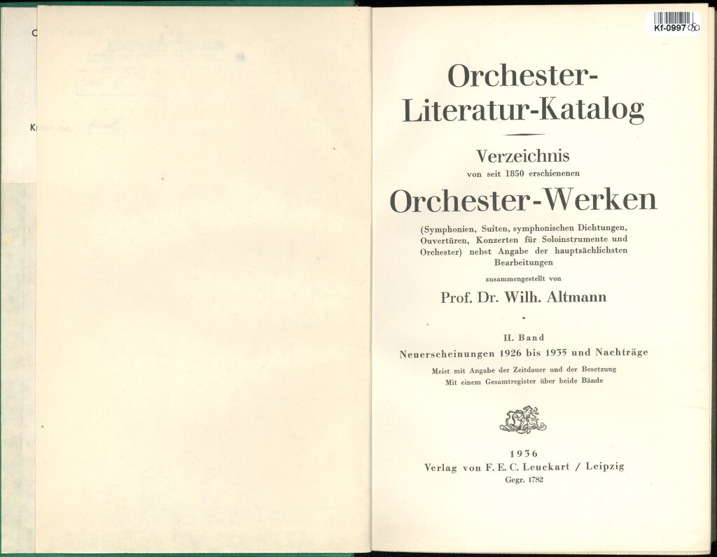 Orchester - Literatur - Katalog II. Band