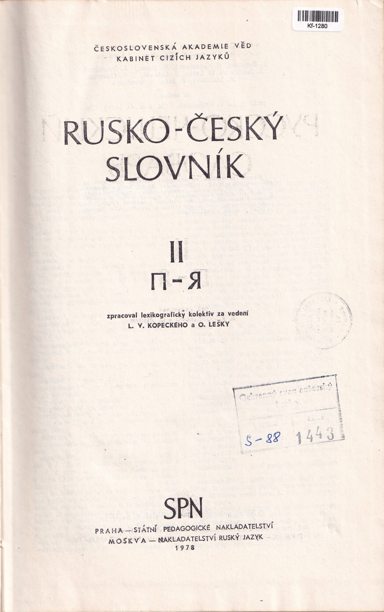 Rusko-český slovník II (П-Я)