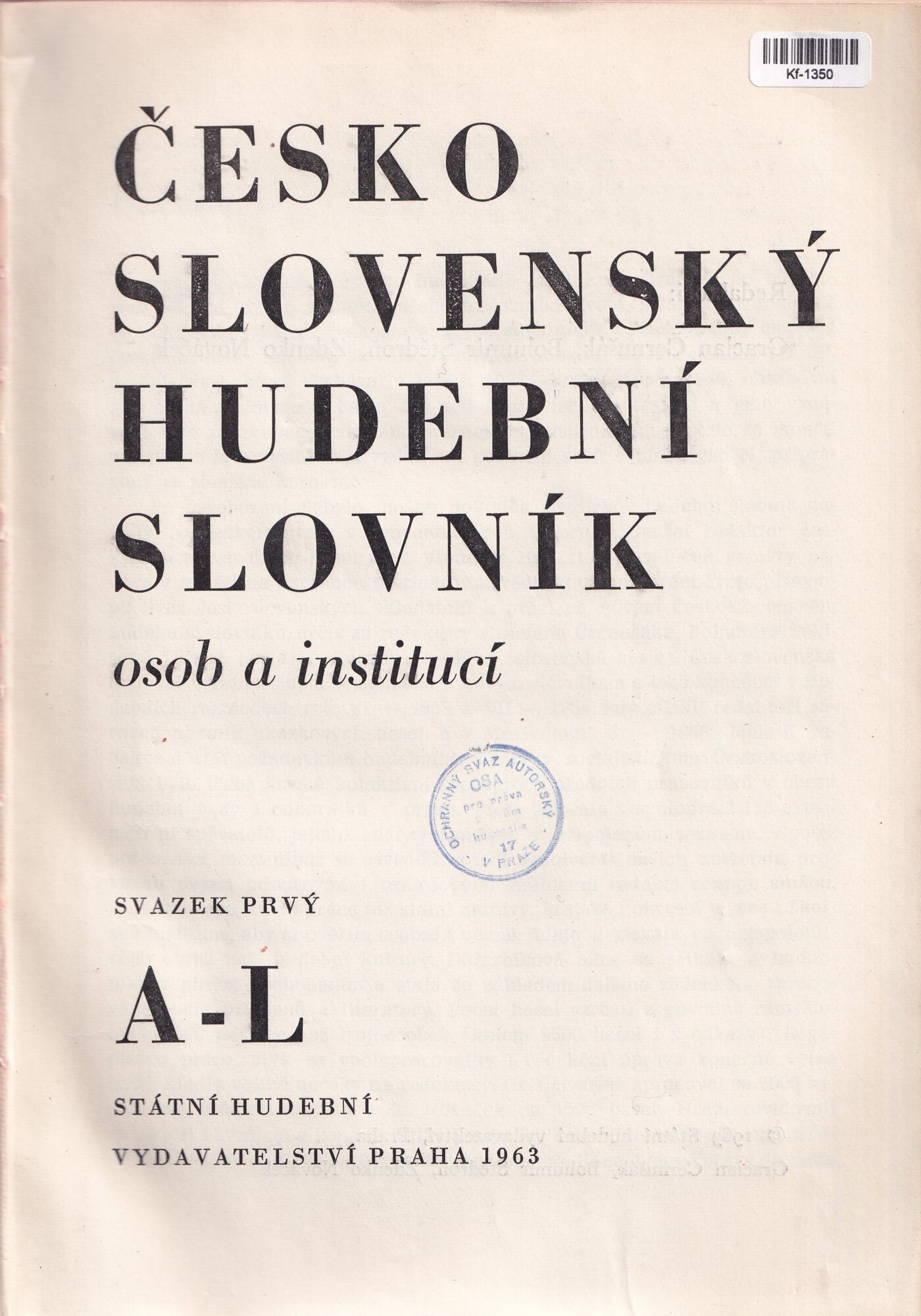 Česko Slovenský Hudební Slovník osob a institucí A-L