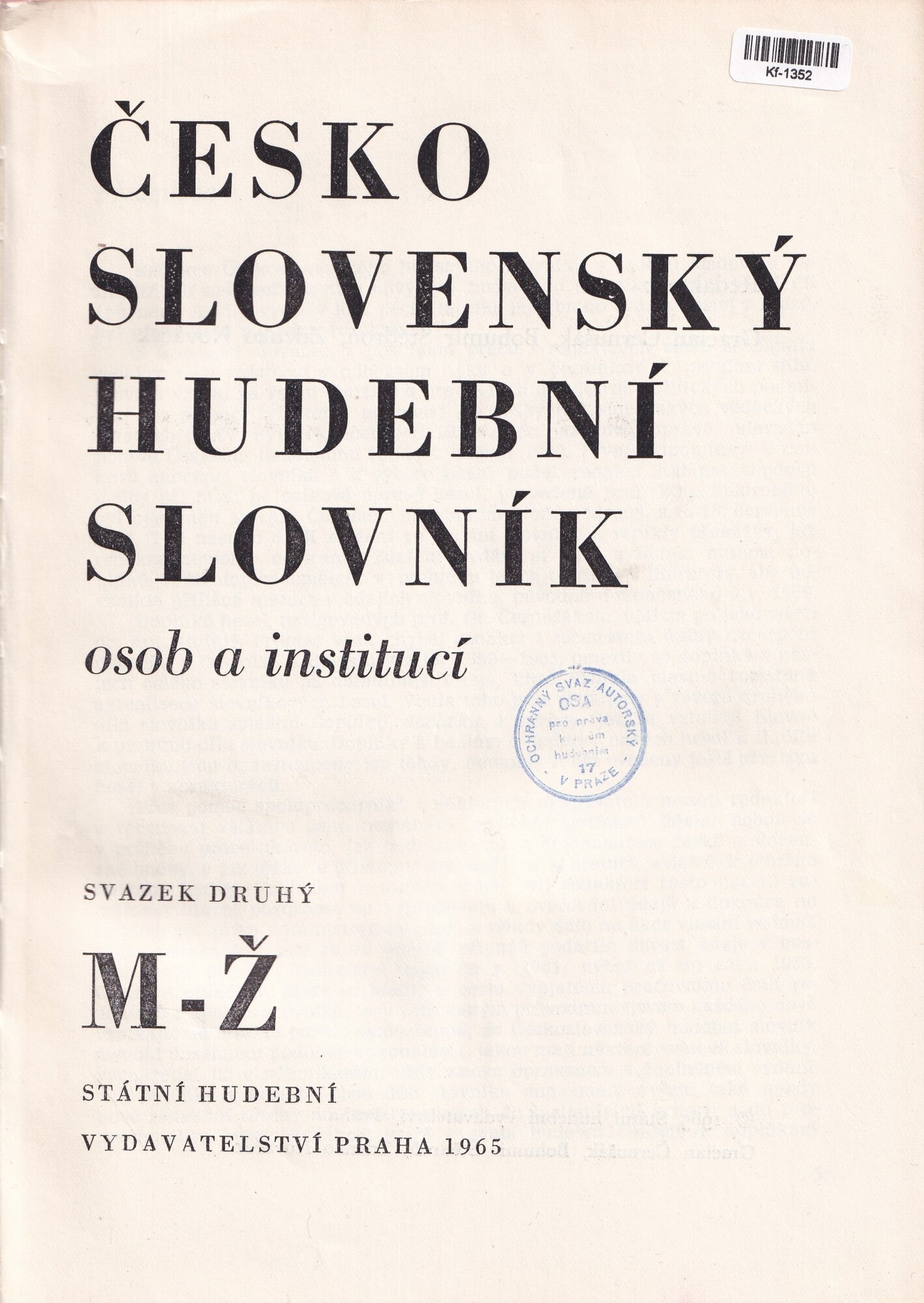 Česko Slovenský Hudební Slovník osob a institucí M-Ž