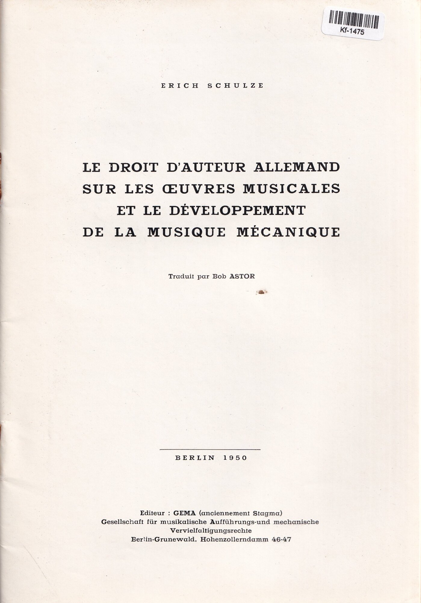 Le Droit d'Auteur Allemand sur les Œuvres Musicales