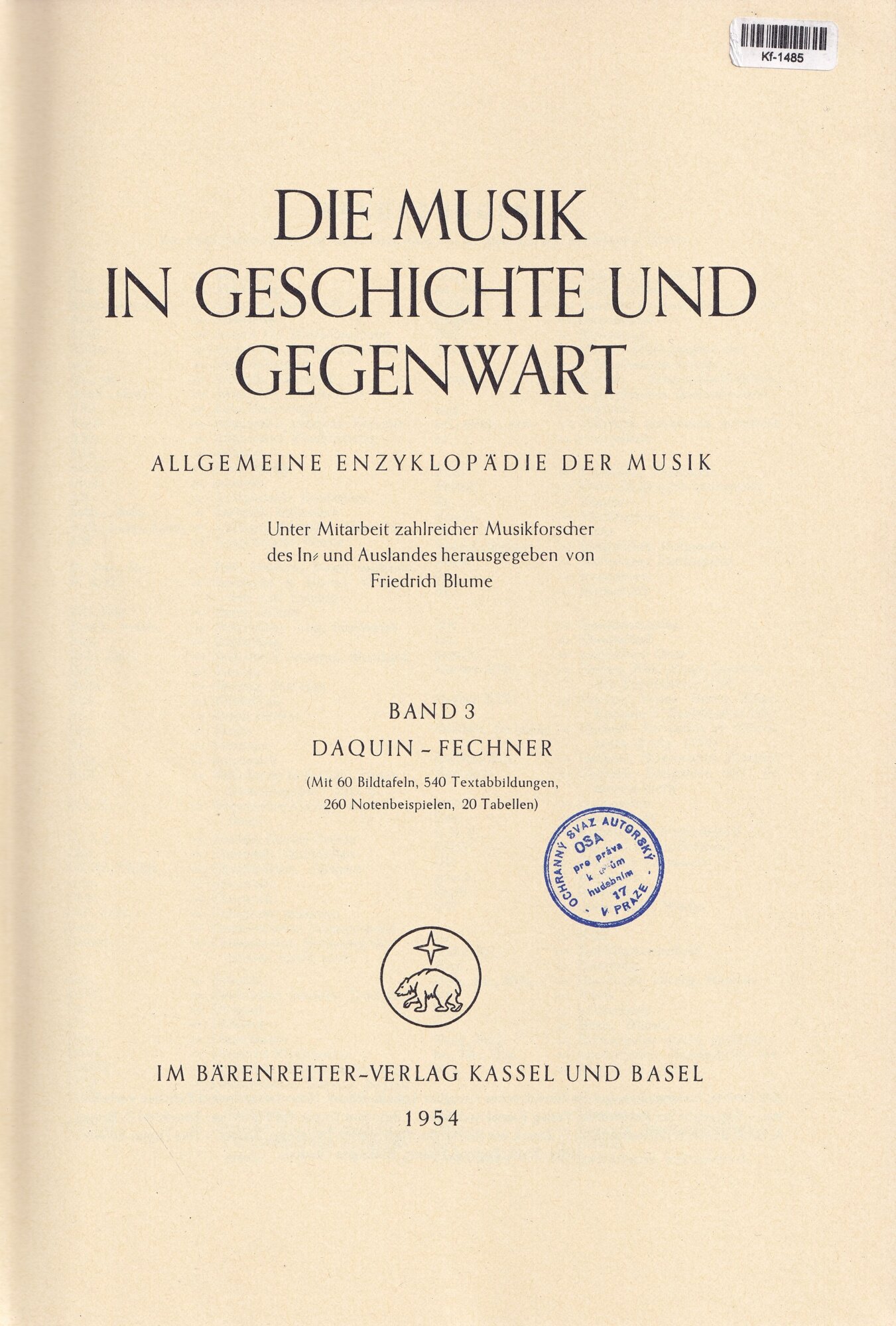 Die Musik in Geschichte und Gegenwart, Band 3: Daquin - Fechner